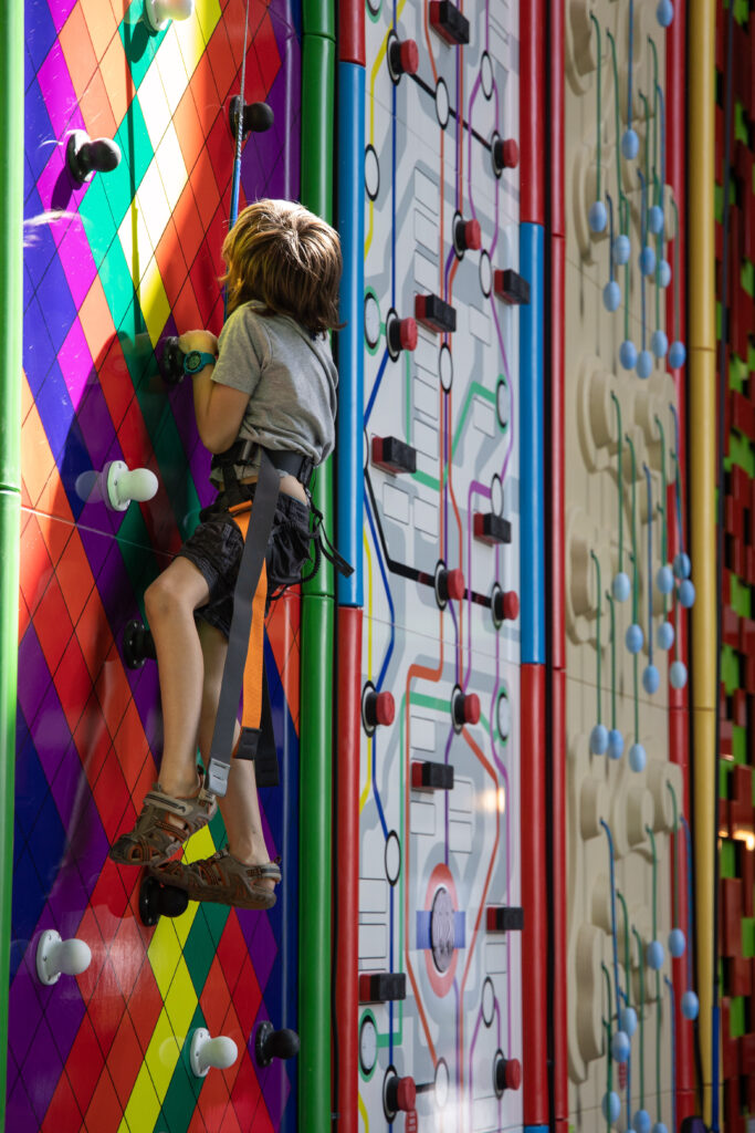 Idéal pour une première approche de l’escalade, le Fun Climbing permet aux enfants de grimper sur des murs colorés et originaux, équipés d’un système d’assurage automatique.