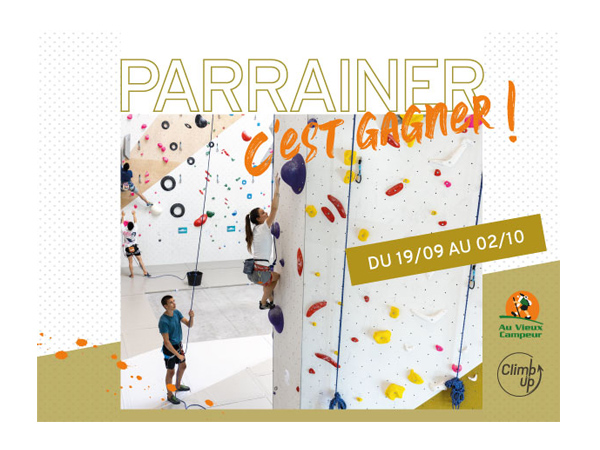 Il est grand temps de faire grimper vos potes ! Du 19 septembre au 2 octobre, votre salle Climb Up vous offre 20⏠de bons d’achat au Vieux Campeur Ă chaque parrainage. Triple bon plan : 1° Votre filleul grimpe gratuitement pour sa premiĂšre sĂ©ance chez Climb Up 2° Il bĂ©nĂ©ficie de -50% sur son 1er mois […]