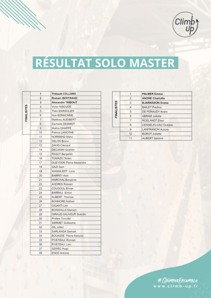 Un grand merci à Flo et François, nos ouvreurs sur ce master, qui ont œuvrés deux jours durant pour vous offrir du beau spectacle avec les prises de nos partenaires ! Nous tenions également à remercier chaleureusement l’ensemble de nos partenaires pour leur présence et leur implication, sans eux le Solo Master n’aurait pu avoir lieu. 💞