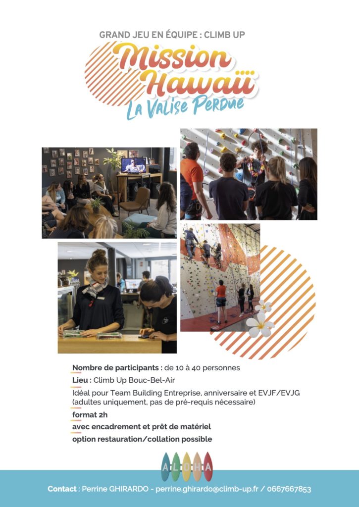 Venez découvrir notre nouveau Team Building à Climb Up Aix-Bouc Bel Air ! Lors de ce jeu en équipe, vous incarnez une agence de voyage à la recherche d’une valise égarée.